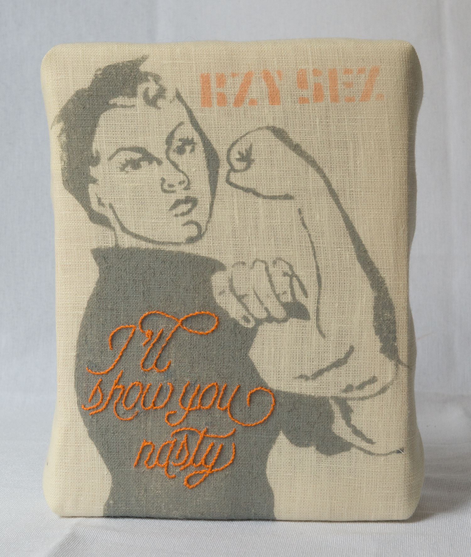 RZY-SEZ-nasty-embroidery March 1, 2018 1500 × 1774 Meet Nasty RZY “RZY SEZ I’ll show you nasty,” embroidery and spray paint RZY SEZ I’ll show you nasty, embroidery and spray paint, 6 x 8 x 1.5
