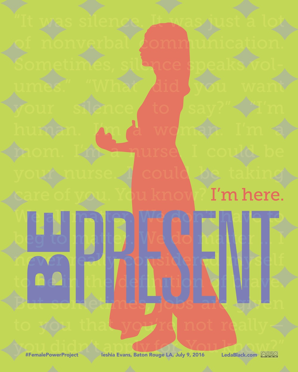 BE PRESENT (revised) — #FemalePowerProject perSISTERS print honoring Ieshia Evans standing in the way of riot police in Baton Rouge, LA, during a Black Lives Matter protest.